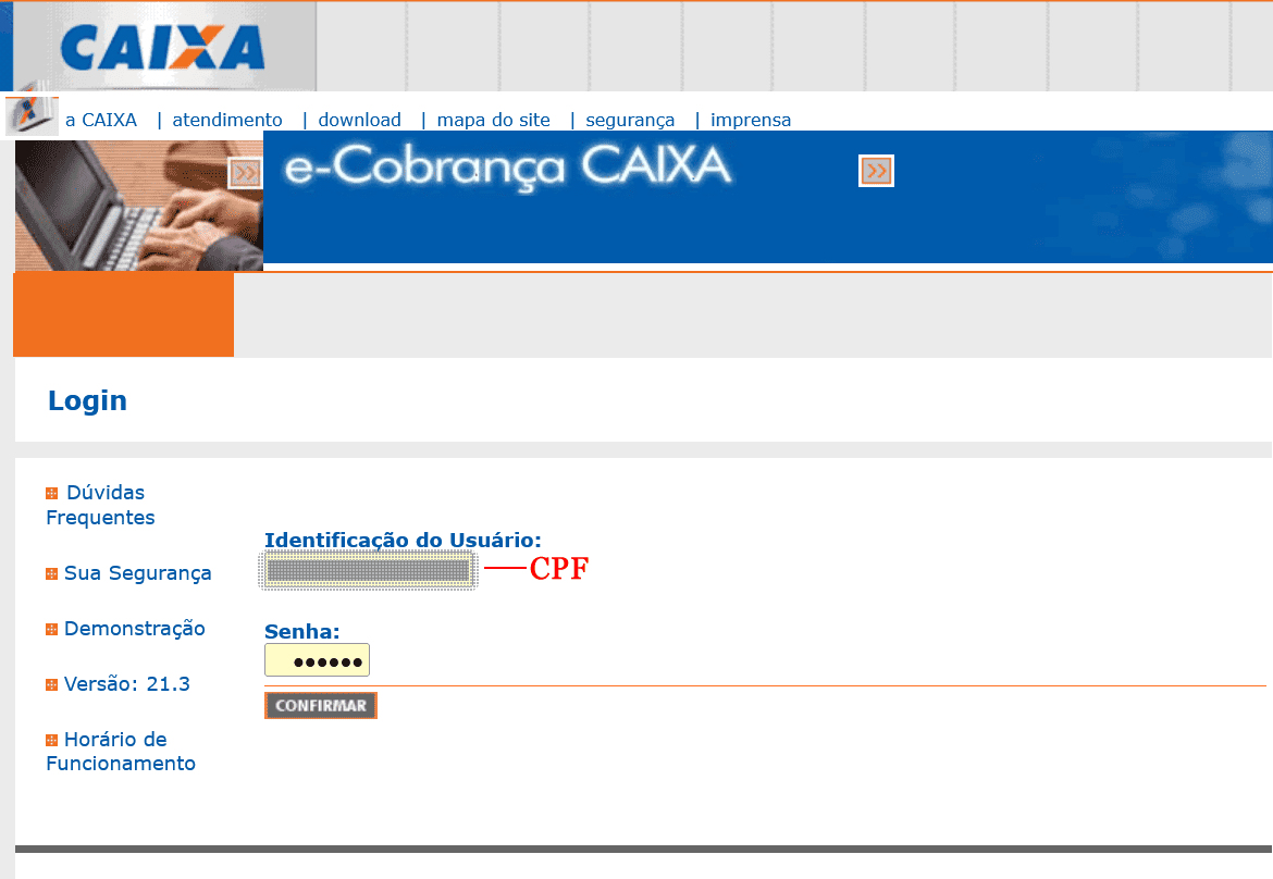 Acesse o endereço https://ecobranca.com.br e digite os dados fornecidos pelo gerente.