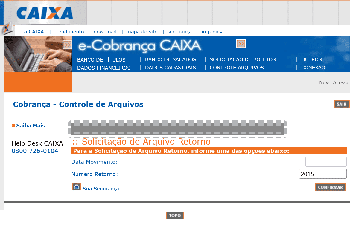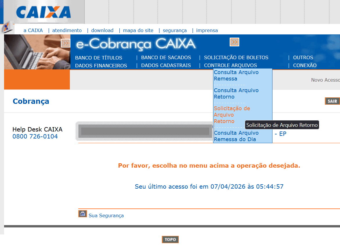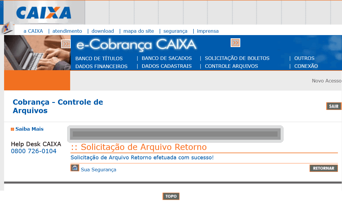 Na tela de “Solicitação de Arquivo Retorno” escolha umas das opções oferecidas: